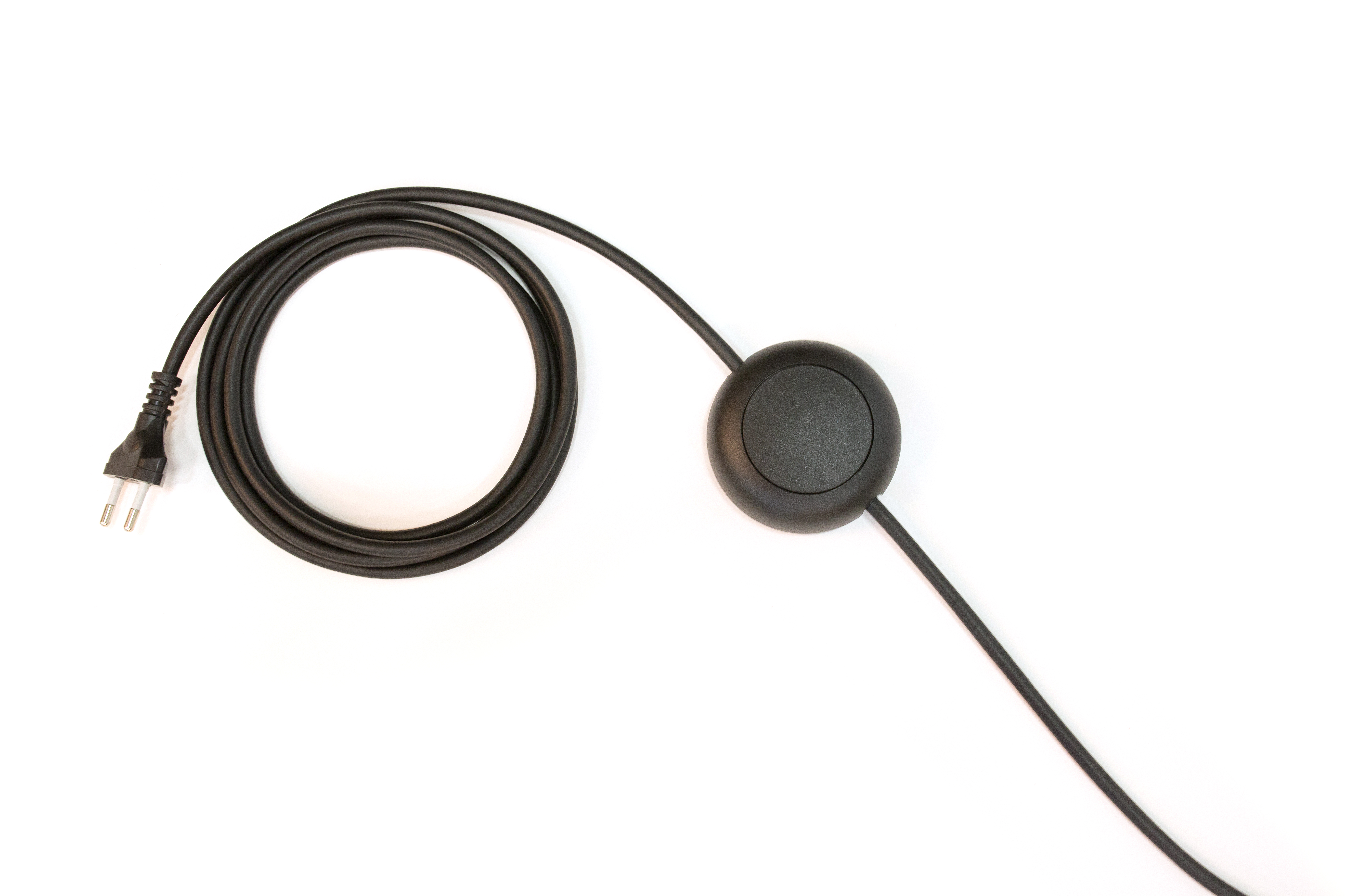über einen stufenlos dimmbaren Schnurdimmer. Das Gummikabel kann im