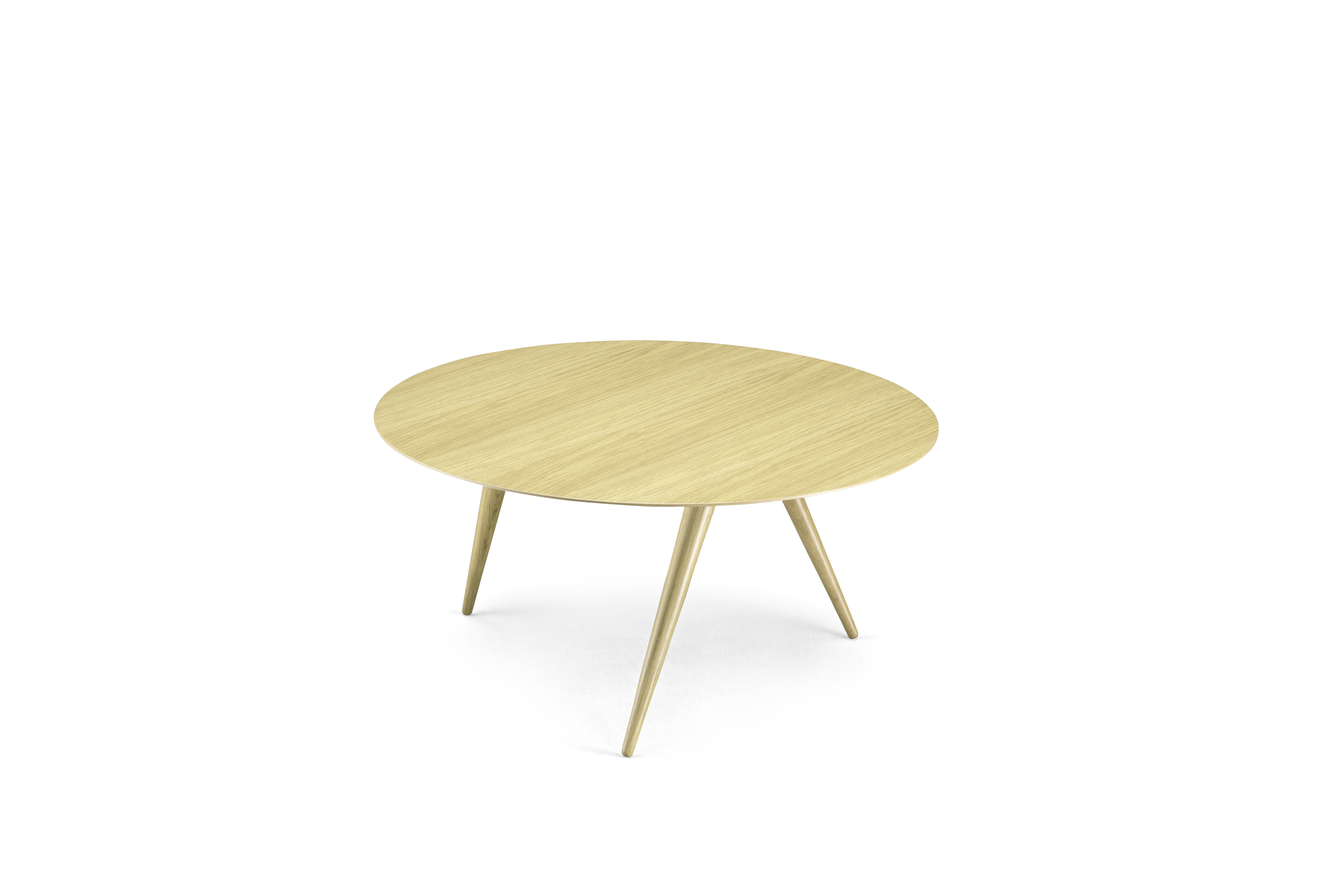 Durch die graphisch reduzierte Linienführung in Kombination mit den auf zwei Achsen geneigten, konisch zulaufenden Beine entsteht der lässige und zugleich akrobatisch anmutende Charakter.